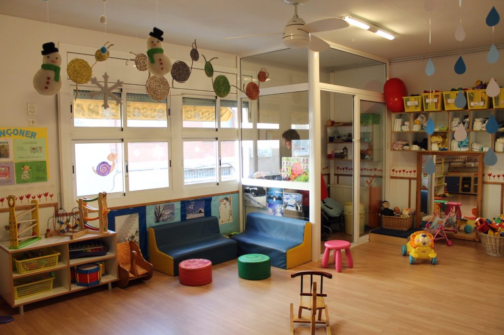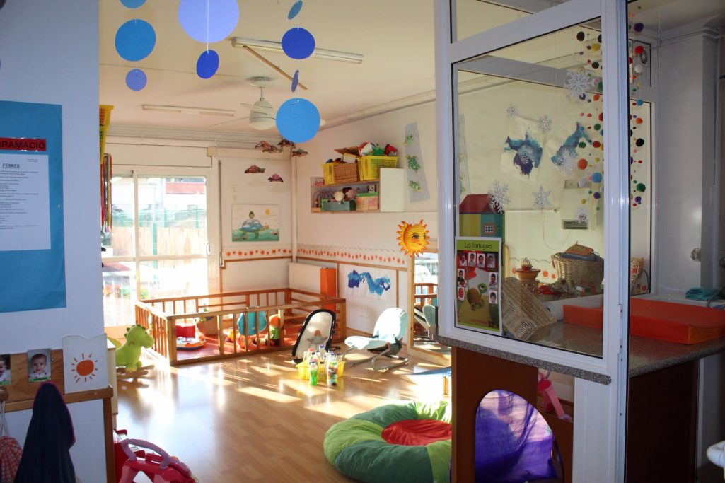 - 1 classe de lactants: amb sortida directe al pati. Un dormitori, pel descans dels nens i les nenes, i una zona reservada a l'higiene amb una taula de canvi i casillers individuals per a cada nen i nena.