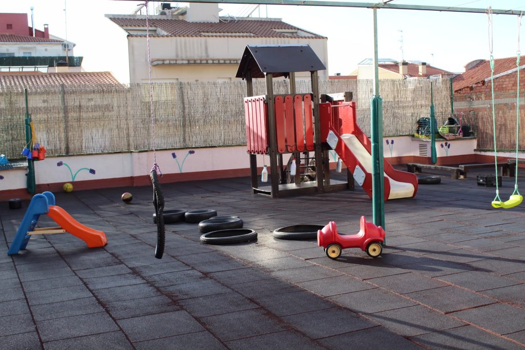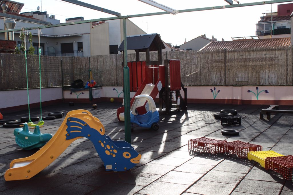 El pati de la nostra escola té 200 m2. És un espai molt ampli i també molt assolellat on els nens i nenes tenen al seu abast diferents joguines per desenvolupar la motricitat.